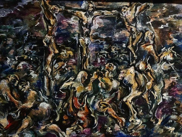 In copertina, Segnalibro illustrato: Crocifissione di Emilio Vedova, 1947, colori a olio su tela, Museo d'Arte Moderna Mario Rimoldi, Cortina d'Ampezzo (Belluno), riferimento all'opera di Tintoretto Crocifissione, 1554-15555, olio su tela, Gallerie dell'Accademia, Venezia; foto R. Frattaruolo, mostra Vedova Tintoretto. In dialogo, 9 gennaio 2026, Palazzo Madama, Torino