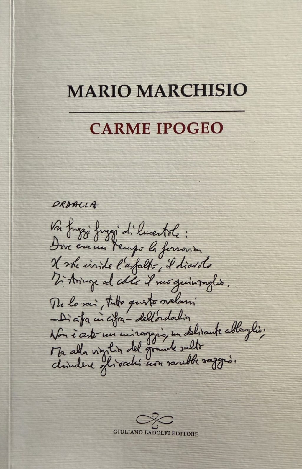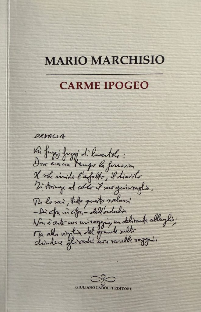 CARME IPOGEO è la silloge di Mario Marchisio per Giuliano Ladolfi Editore (2025) nella Collana Onice diretta da Carlo Ragliani. Tre sezioni (Le opere della morte – Prima del giorno – Trittico) e con postfazione di Diego Riccobene. Partiamo dall’interessante e inconsueto titolo. Carme rimanda al carmen, al canto, ma anche alla formula rituale e oracolare; ipogeo indica invece ciò che sta sotto terra, nel sottosuolo, nel sepolcrale. Già qui Marchisio dichiara la propria intenzione di poesia che non cerca la luce, ma una parola che accetta di levarsi dal basso, dal luogo della morte, dell’ombra e di tutto ciò che resta nascosto. Da questo punto di vista, Carme ipogeo non è semplicemente un libro “sulla morte”. La morte vi agisce come forma della conoscenza, pressione esercitata sul linguaggio, principio che deforma immagini, corpi e pensiero. Fin dai testi iniziali il lettore entra in una topografia infera dove voragine, sangue, gelo, rovina e conoscenza convivono nella stessa tensione.